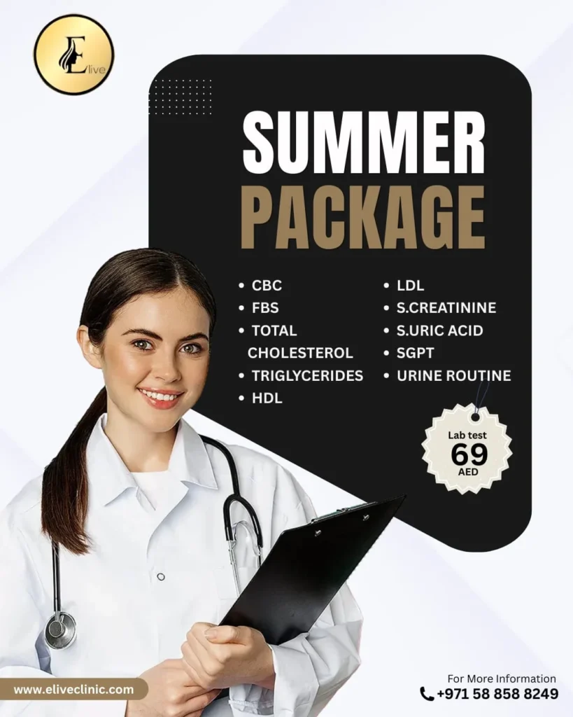 At Elive Clinics, Dubai, our general health and clinical services are designed to support your overall well-being through preventive care, medical assessments, and personalized treatment plans. Combining clinical expertise with a patient-focused approach, our healthcare professionals help you maintain optimal health while identifying potential concerns early.